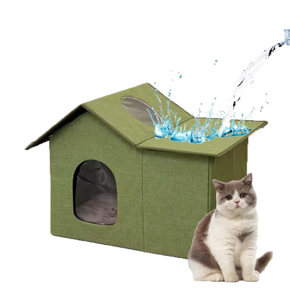 (Green, M( 53X33CM)) Outdoor Waterproof Cat House Warm Heated Winter Cat House Insulated Outside Foldable Cats Nest Tent Sleeping Extra Large Pet