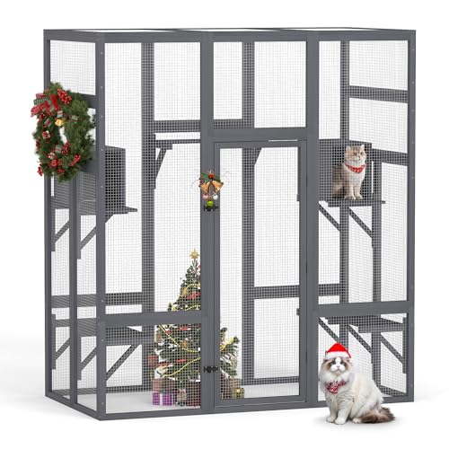 2-in-1 Walk-in Catio Outdoor Cat Enclosure,Outdoor Indoor Large Cat House,Cat Cage 7 Platforms & 2 Resting Box with Waterproof Roof,Accommodate Up to 6 Cats,Gifts for Cats