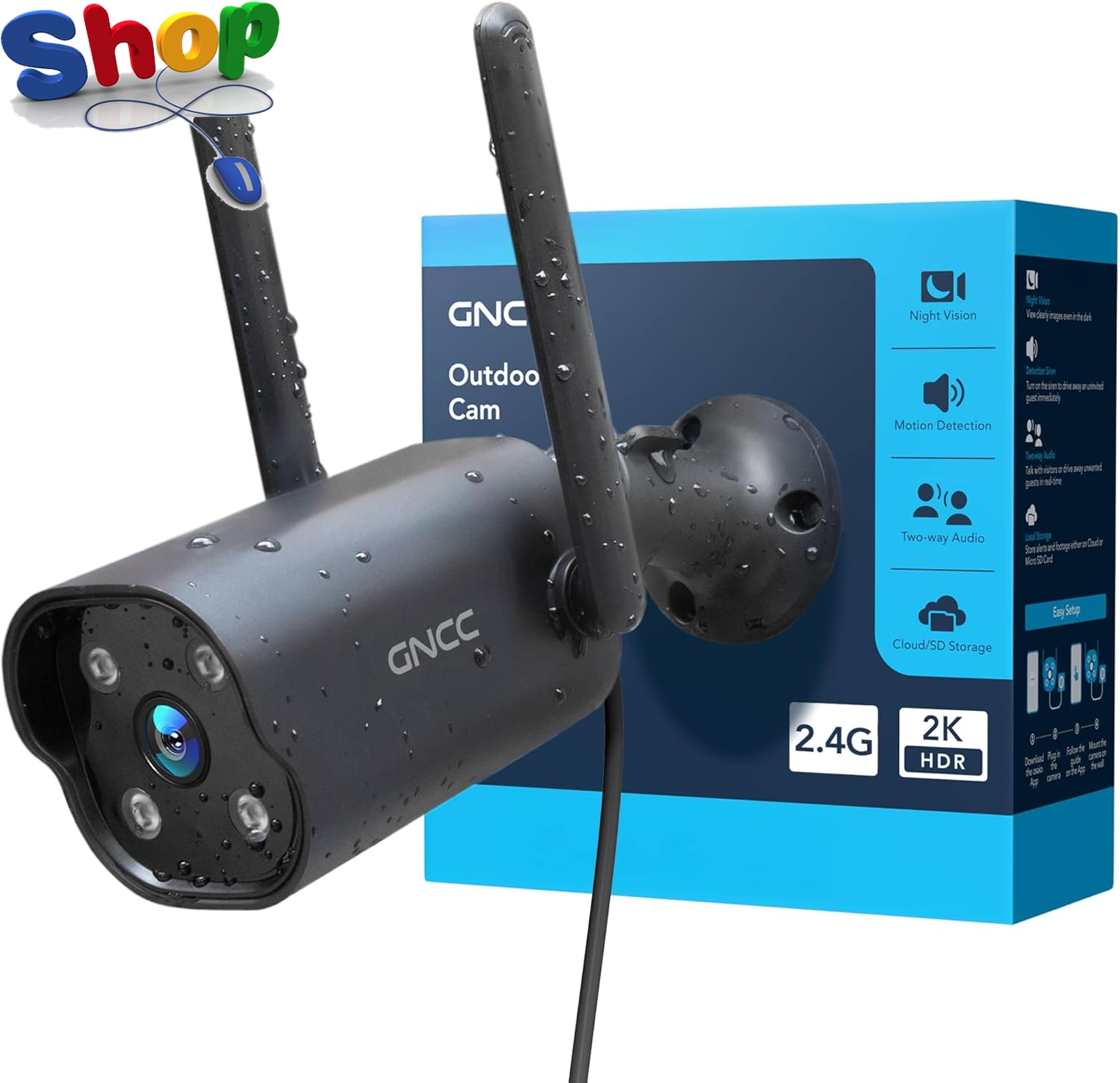 GNCC 2K Outdoor CCTV Camera, Home Security Camera with Night Vision, 110° View, IP65 Weatherproof, AI Motion Detection, Siren Alarm, 2-Way Audio, Work with Alexa & Google Home, 2.4GHz WiFi, Cloud&SD