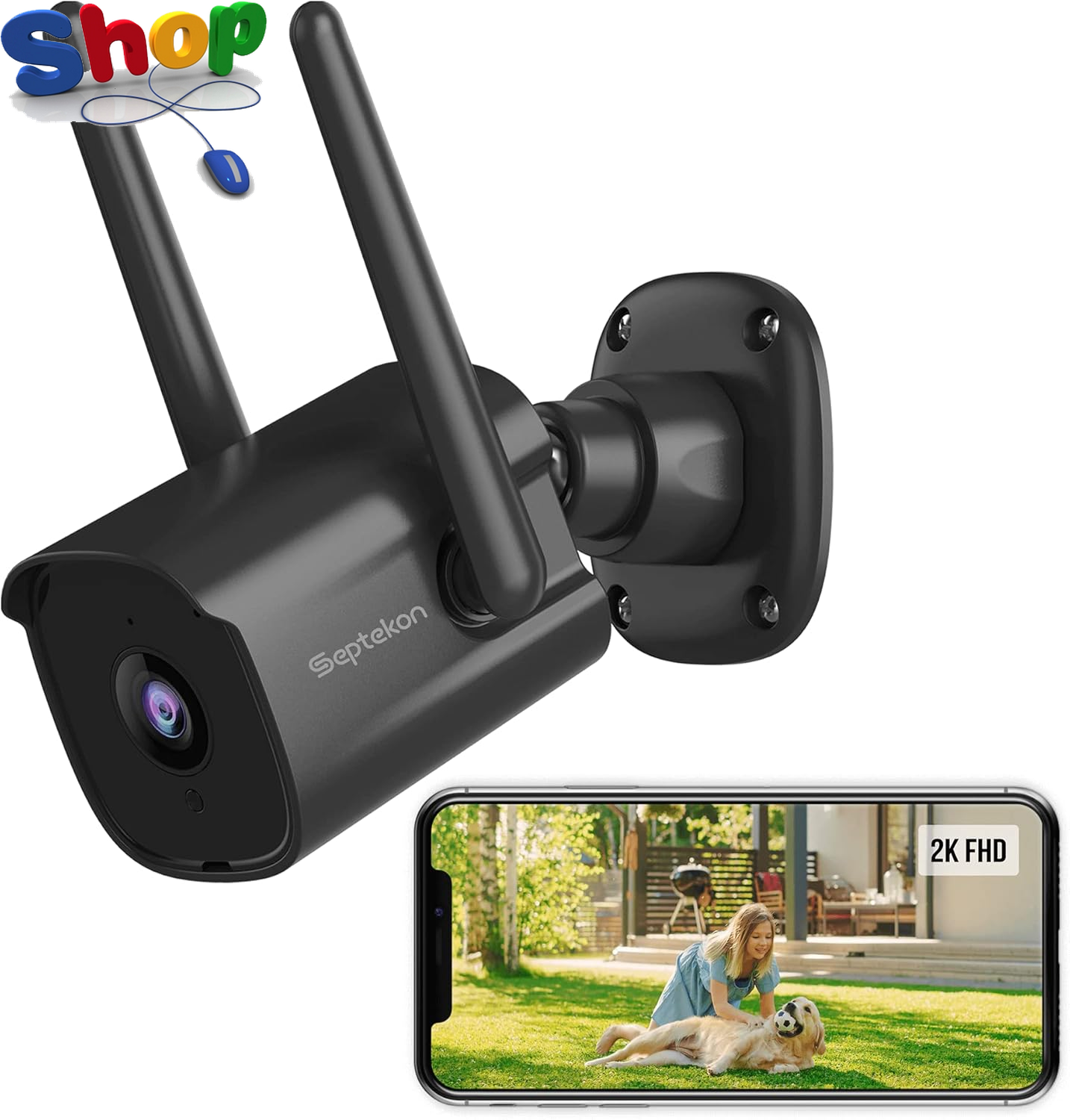 Septekon Security Camera Outdoor CCTV Camera 2 Pack, 2K Dual Antenna WiFi Home Surveillance Cameras with IP66 Waterproof, Night Vision, AI Motion Detection, 2-Way Audio, Black