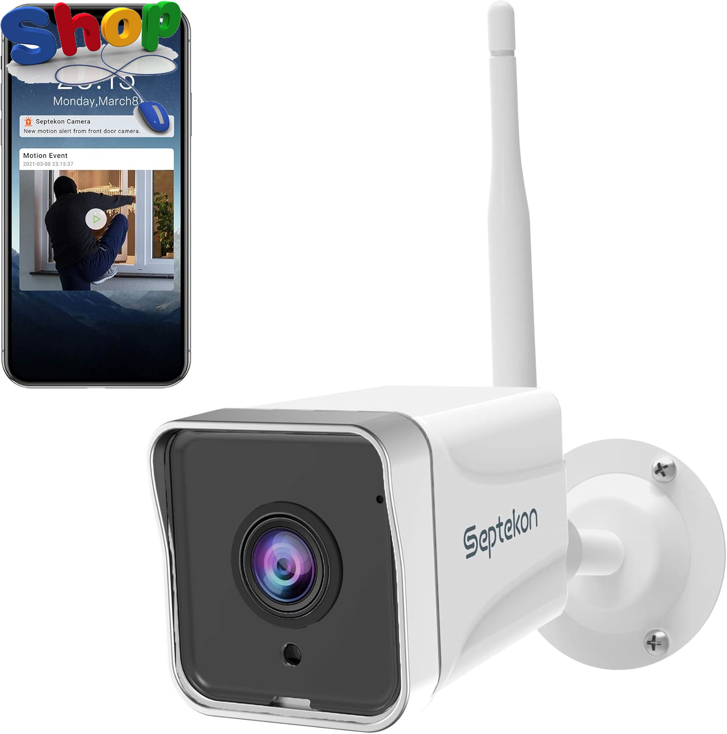 Septekon Security Camera Outdoor CCTV Camera, 2K Dual Antenna WiFi Home Surveillance Cameras with IP66 Waterproof, Night Vision, AI Motion Detection, 2-Way Audio, White - P30i