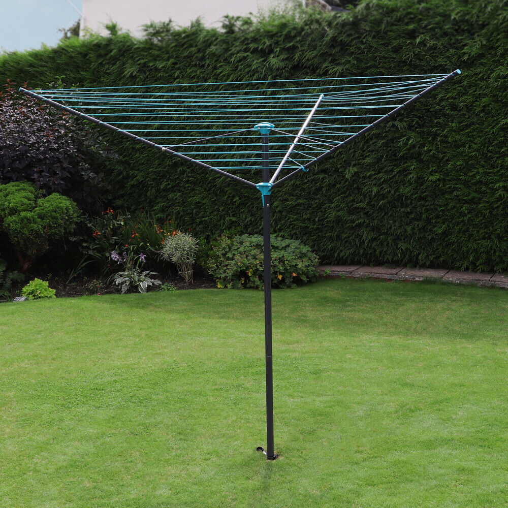 3 Arm Outdoor Rotary Clothes Airer 30m Drying Area Foldable Washing Line