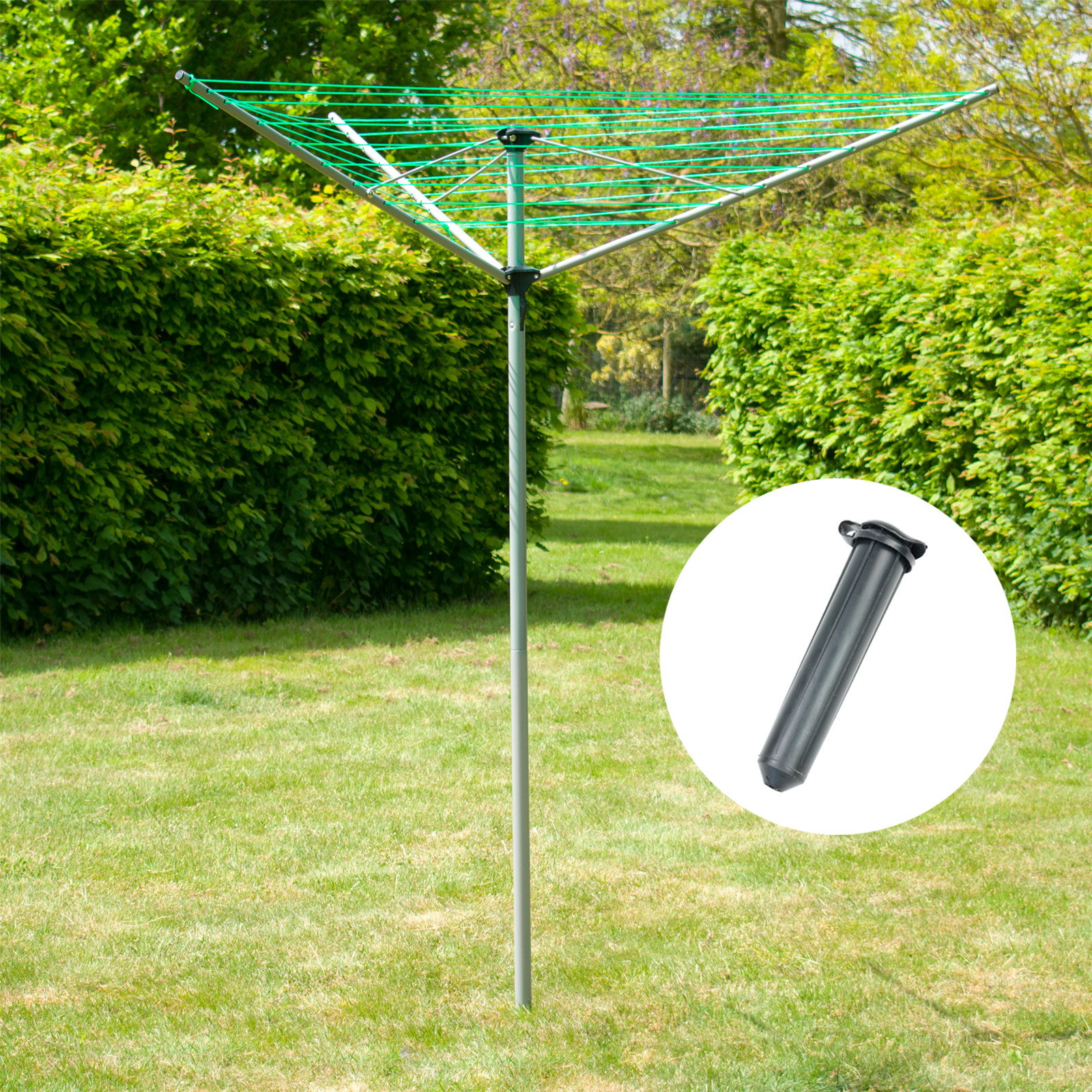 Vileda 4 Arm Rotary Dryer, Outdoor Clothes Airer with 45m washing Line, Silver & JVL Heavy Duty Multi-Fit Ground Soil Spear Spike with Adaptor to Fit 32 and 40 mm Diameters with Plastic Adaptor