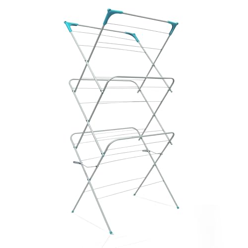 AIBULO Clothes Drying Rack with 24 Rails – Heavy Duty Indoor Outdoor Clothes Airer, Foldable Laundry Drying Maiden for Clothes, Towels & Bedding – Space-Saving Clothes Horse, Silver & Blue