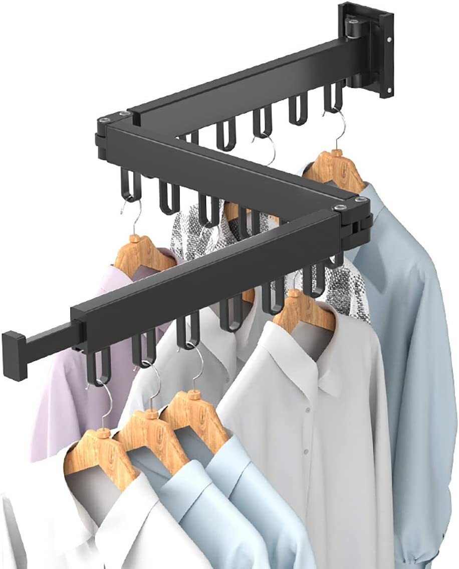 Clothes Drying Rack Wall Mounted Foldable Indoor Outdoor Clothes Hanger Airer UK