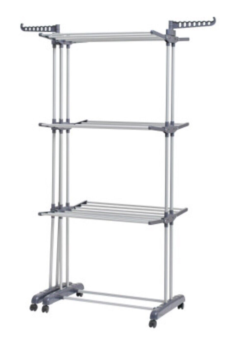 3 Tier Foldable Clothes Airer; Indoor Outdoor Clothes Rack on Wheels