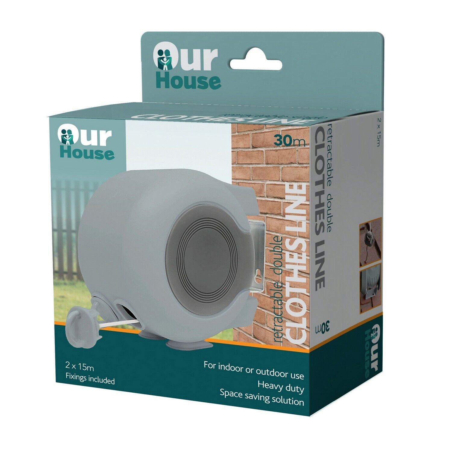 OurHouse 30metre 2 Lines Retractable Laundry Drying Indoor Outdoor Clothes Dryer
