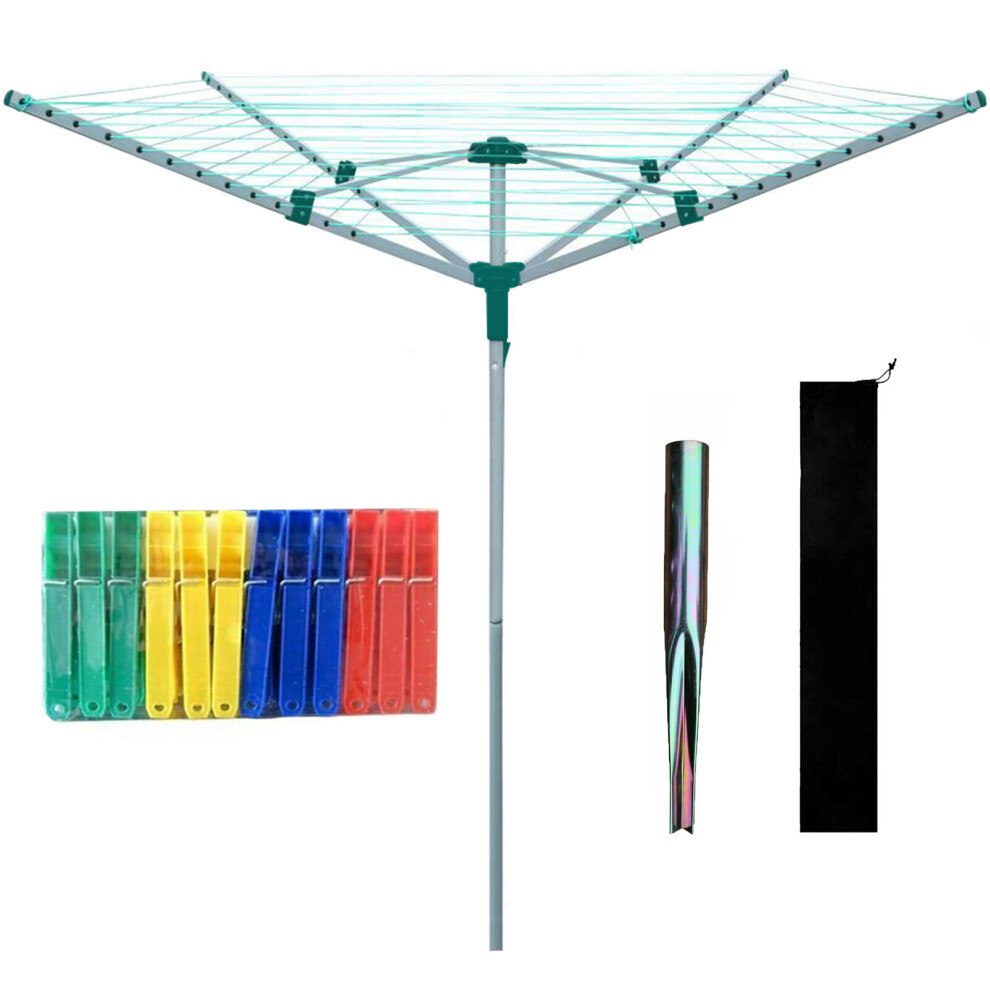 4 ARM ROTARY AIRER 50M OUTDOOR CLOTHES WASHING LINE DRYER GROUND SPIKE COVER UK
