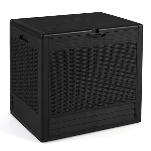 GiantexUK Garden Storage Box, Outdoor Large Deck Box with Lockable Lid, Waterproof Chest Container for Patio Cushions and Gardening Tools (Rattan Effect, 58 x 43.5 x 53cm, Black)