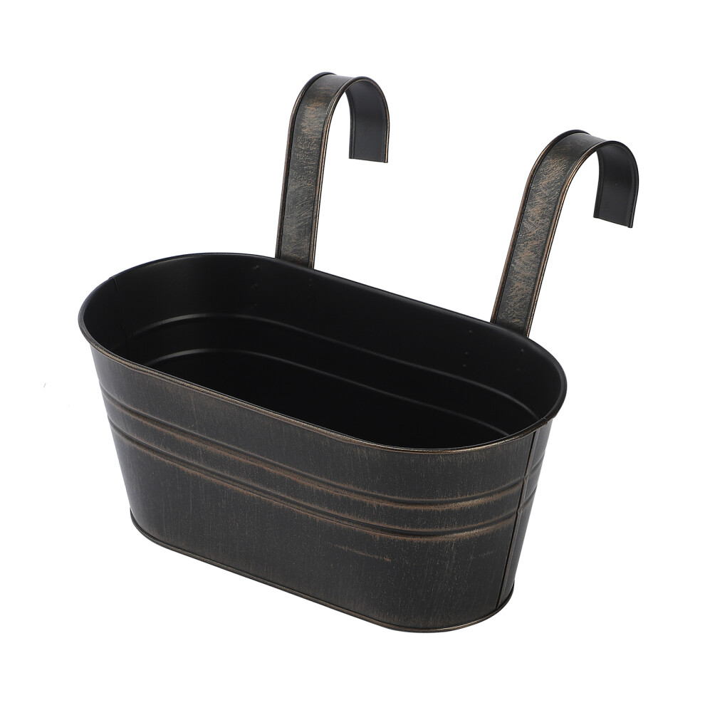 Elegant Rustic Decorative Planter, Metal Hanging Flower Pot with Drainage Hole for Outdoor Gardening, Perfect for Decorating Brick Walls & Decks (Blac