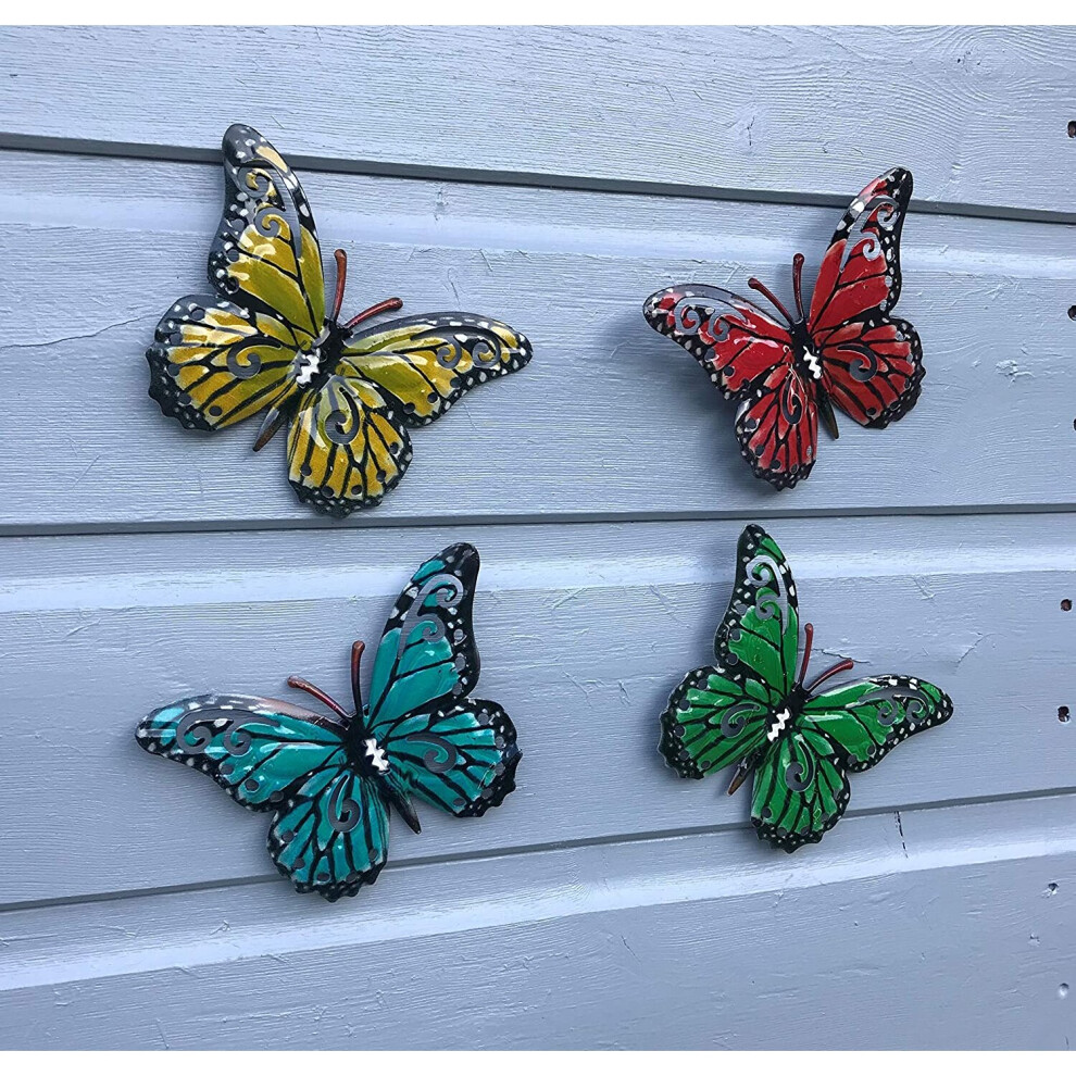 Maggy Kay Gifts Set of 4 Decorative Garden Butterfly Fence Hangers for Outdoor Sheds Walls Fences