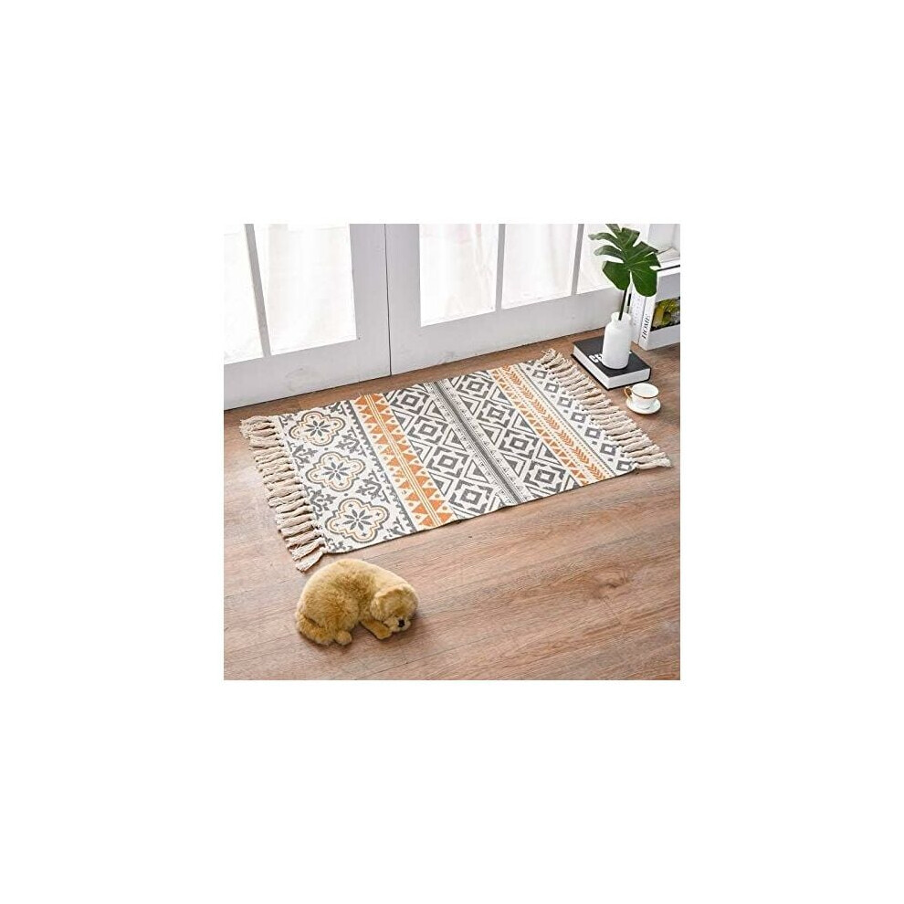 Non Slip Moroccan Style Cotton Tassel Rug, Quick Drying Breathable Material For Indoor Outdoor Use, Decorative Tapestry Brings Life To Walls And Floor