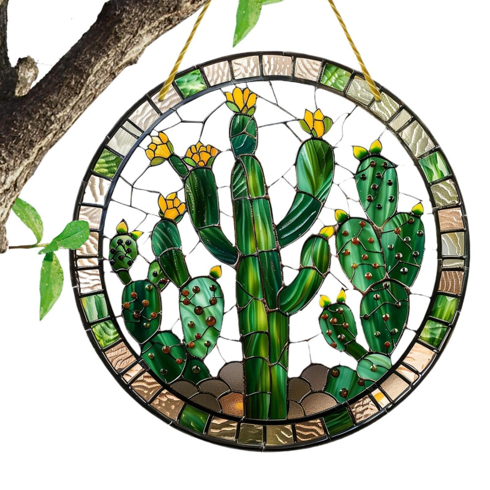 Cactus Window Suncatchers - Decorative Hanging Ornaments for Indoor Outdoor Use, Cactus Design for Walls and Gardens