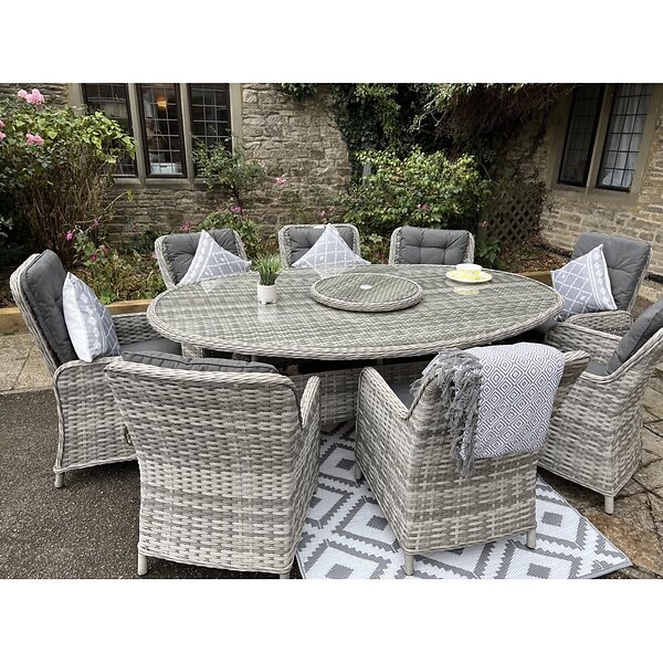RayGar 9 Piece 8 Seater Rattan Dining Furniture Patio Cube Set Grey/Grey Grey