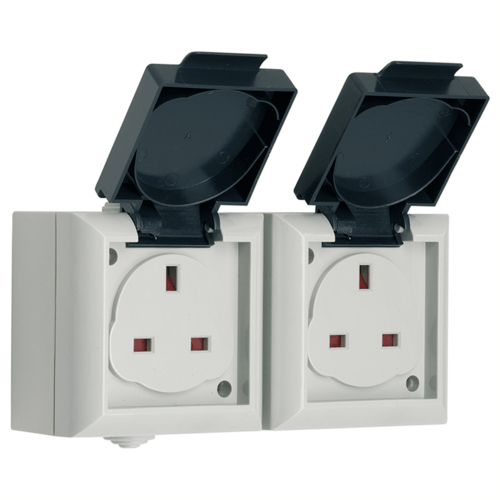 Outdoor Double Plug Socket Outside IP54 Weatherproof Rating - Twin Outlet by SMJ