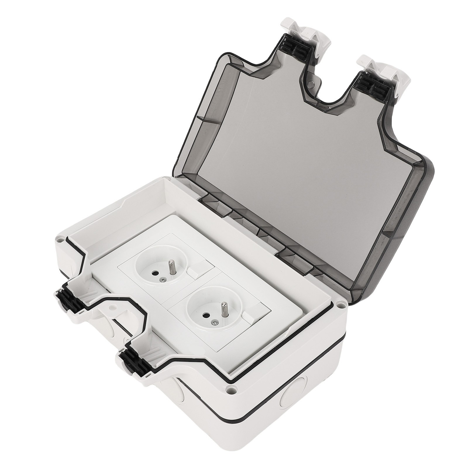 Double Outdoor Socket Waterproof Outside Plug Weatherproof IP66 Gray
