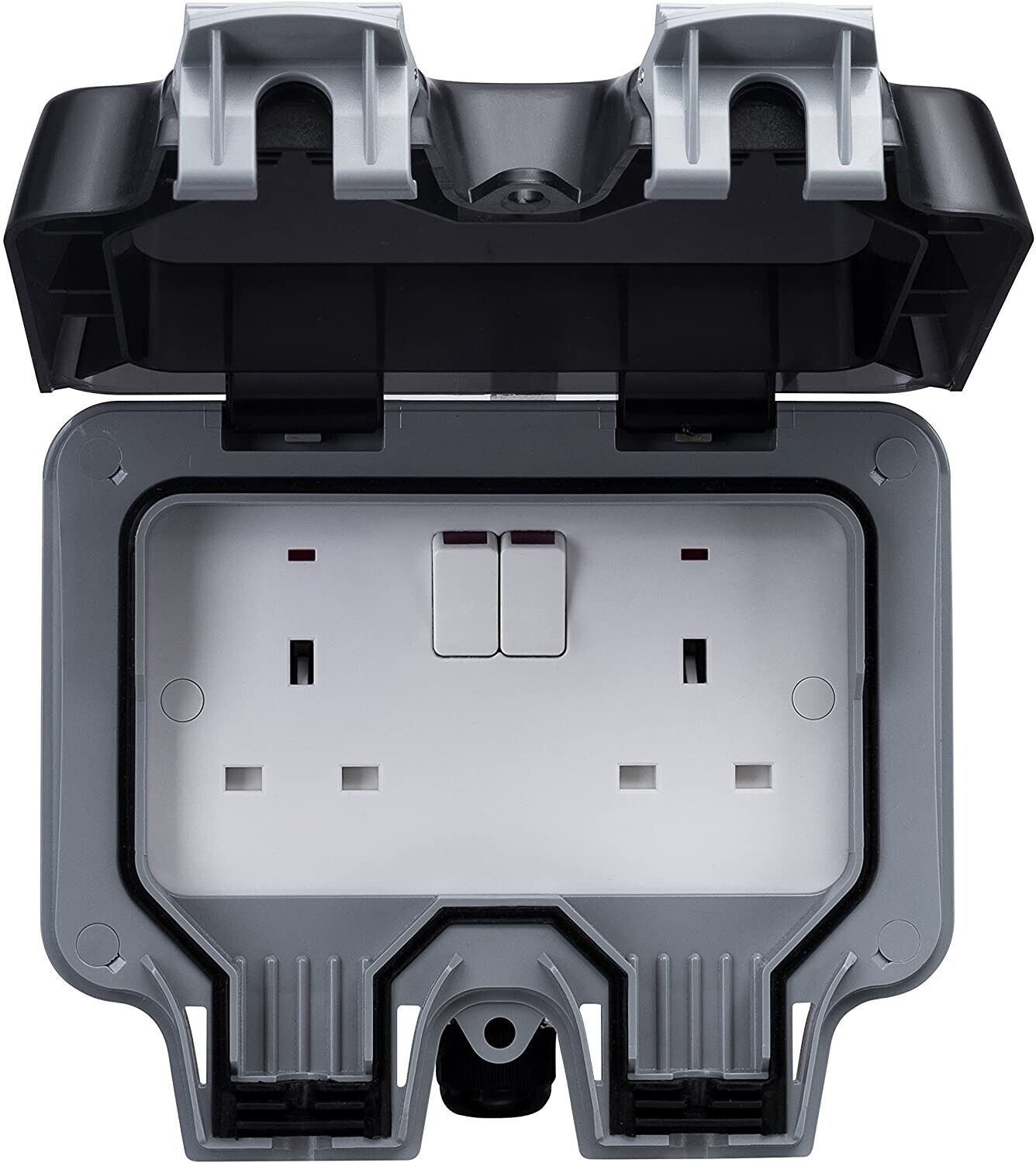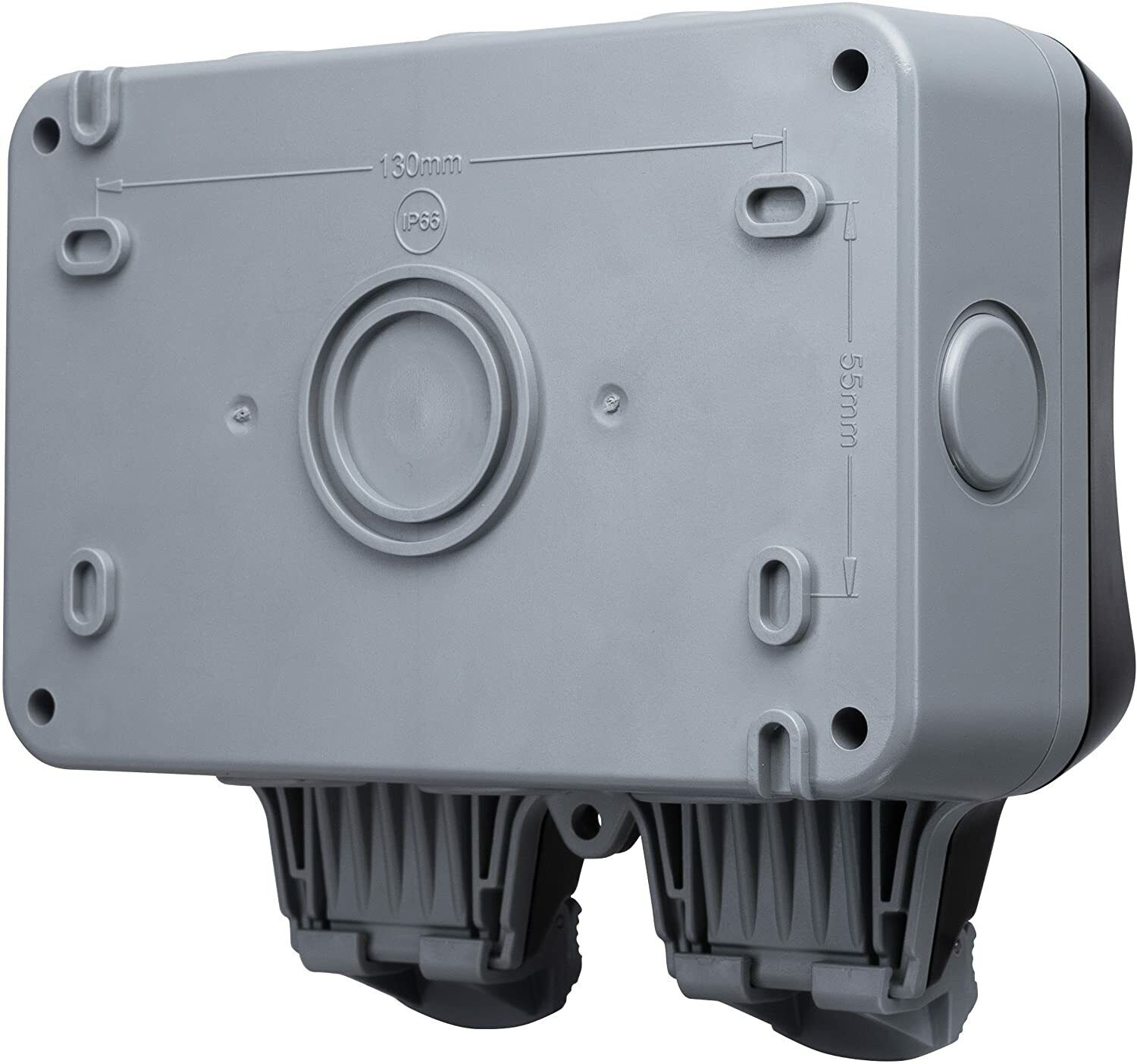 Double Outdoor Socket Waterproof Outside Plug Socket Weatherproof IP66 Wall Electrical Outlet 13Amp 2 Gang Storm Switched Power Box