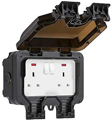 Outdoor Double Socket IP66 Waterproof Switched 13A 2 Gang Outside Garden