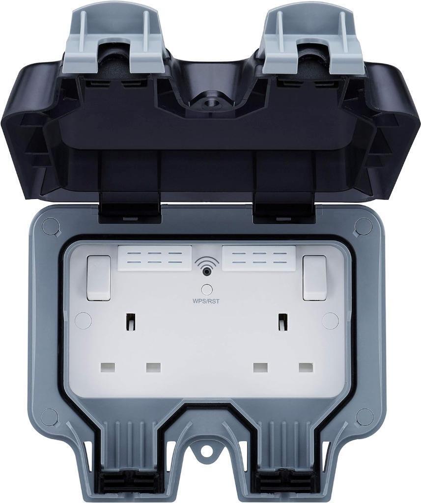 BG Electrical Weatherproof Outdoor Switched Double Socket with Wi-Fi Repeater