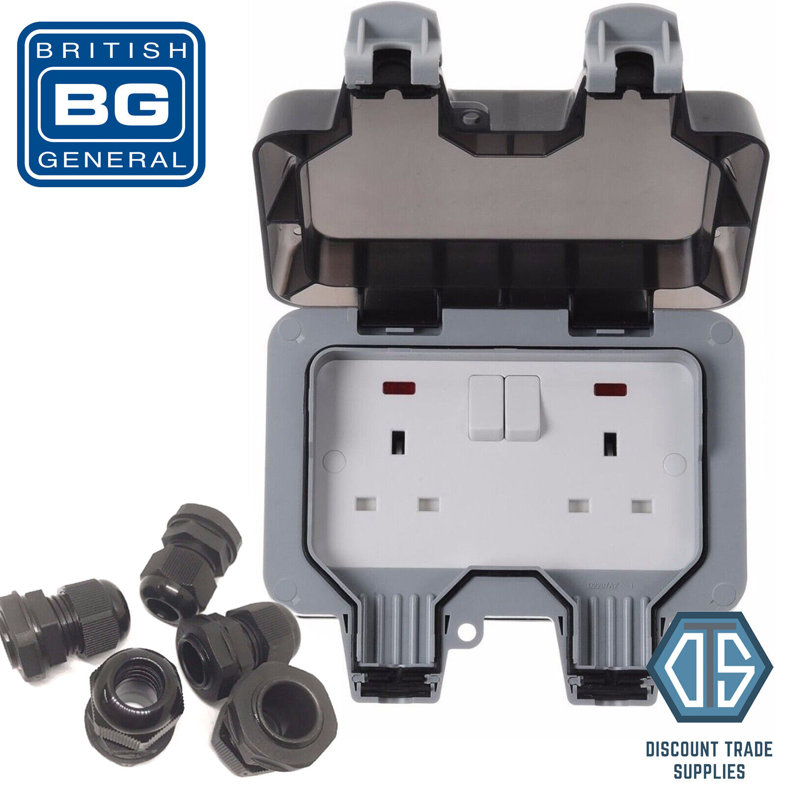 BG Weatherproof IP66 Outdoor 13A Switched Double Socket WP22 + FREE 20mm Glands
