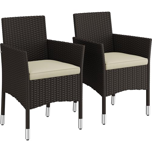 Yaheetech Rattan Garden Chairs Set of 2, Outdoor Garden Armchairs with Cushions, Armrests, High Backrest, Handwoven Rattan for Patio, Garden, Balcony, Brown/Beige
