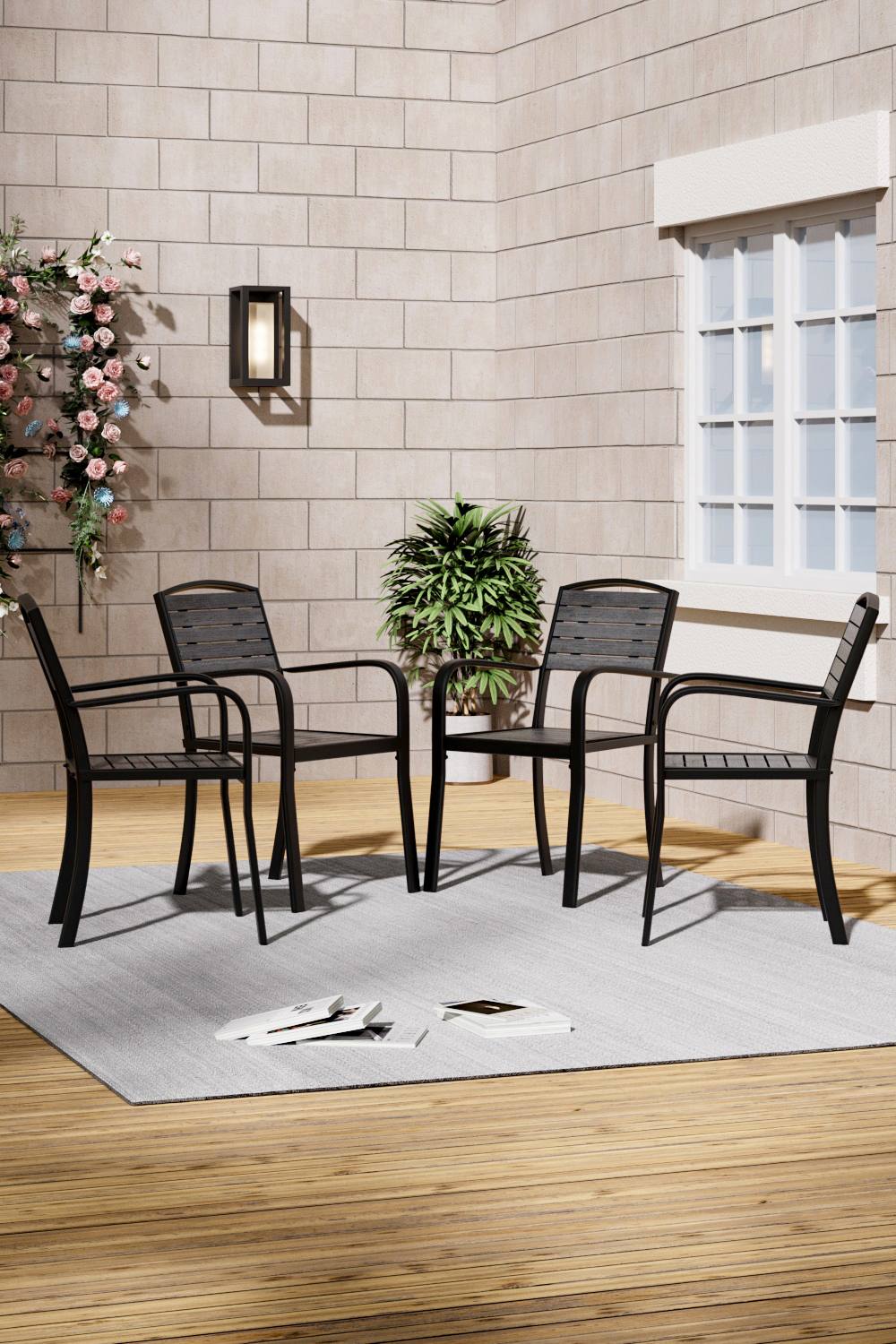 Living and Home Black Outdoor Garden Dining Armchairs Set of 4 in Grey