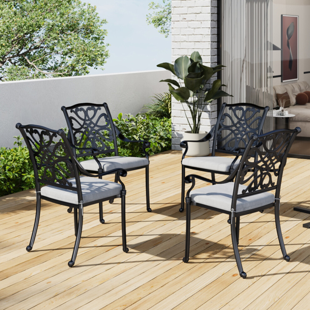 Garden Sanctuary 4Pcs Aluminum Outdoor Dining Armchairs with Cushions