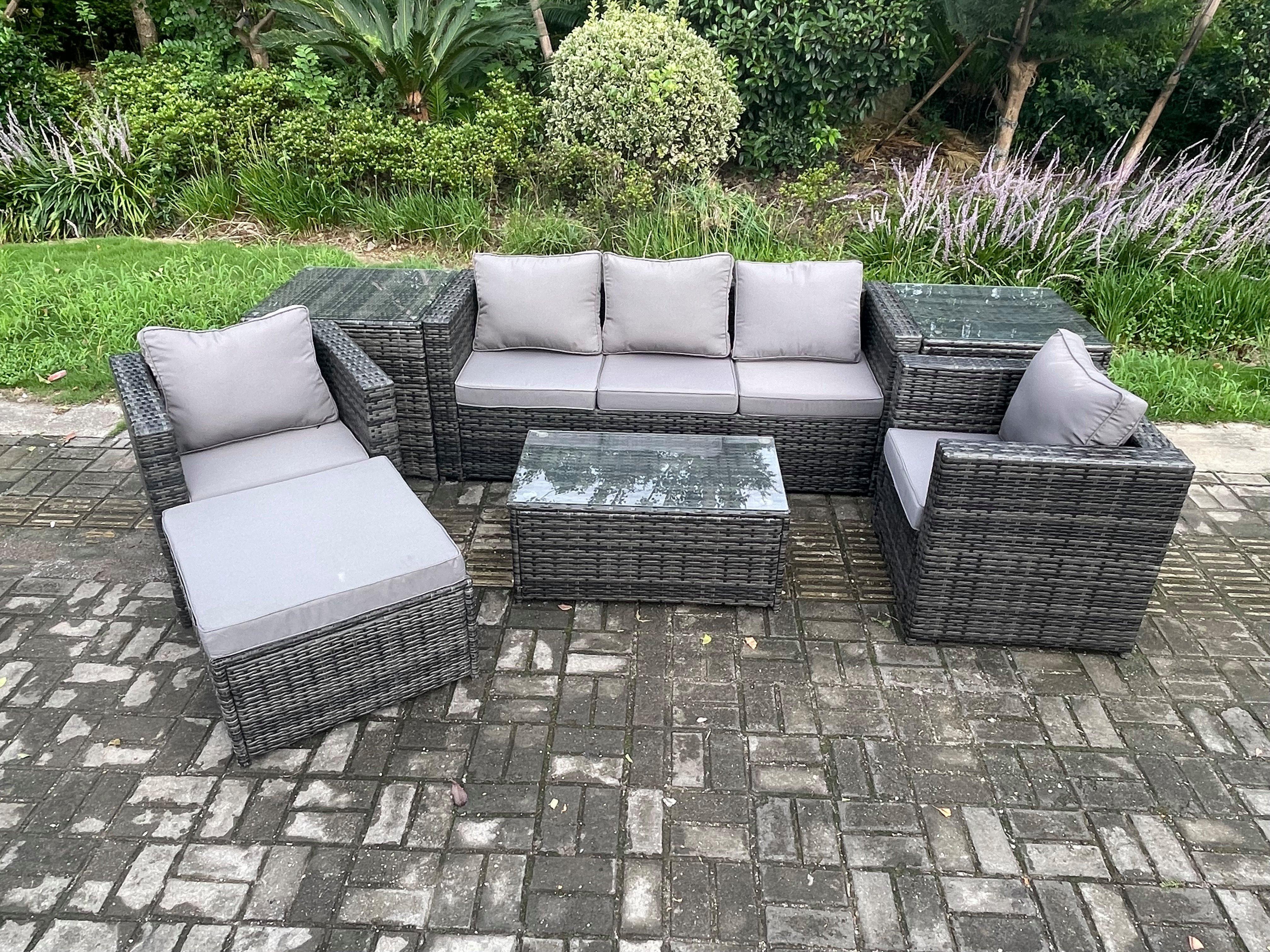 8 Seater Grey Rattan Corner Sofa Set Coffee Table 2 Armchairs Garden Furniture Outdoor