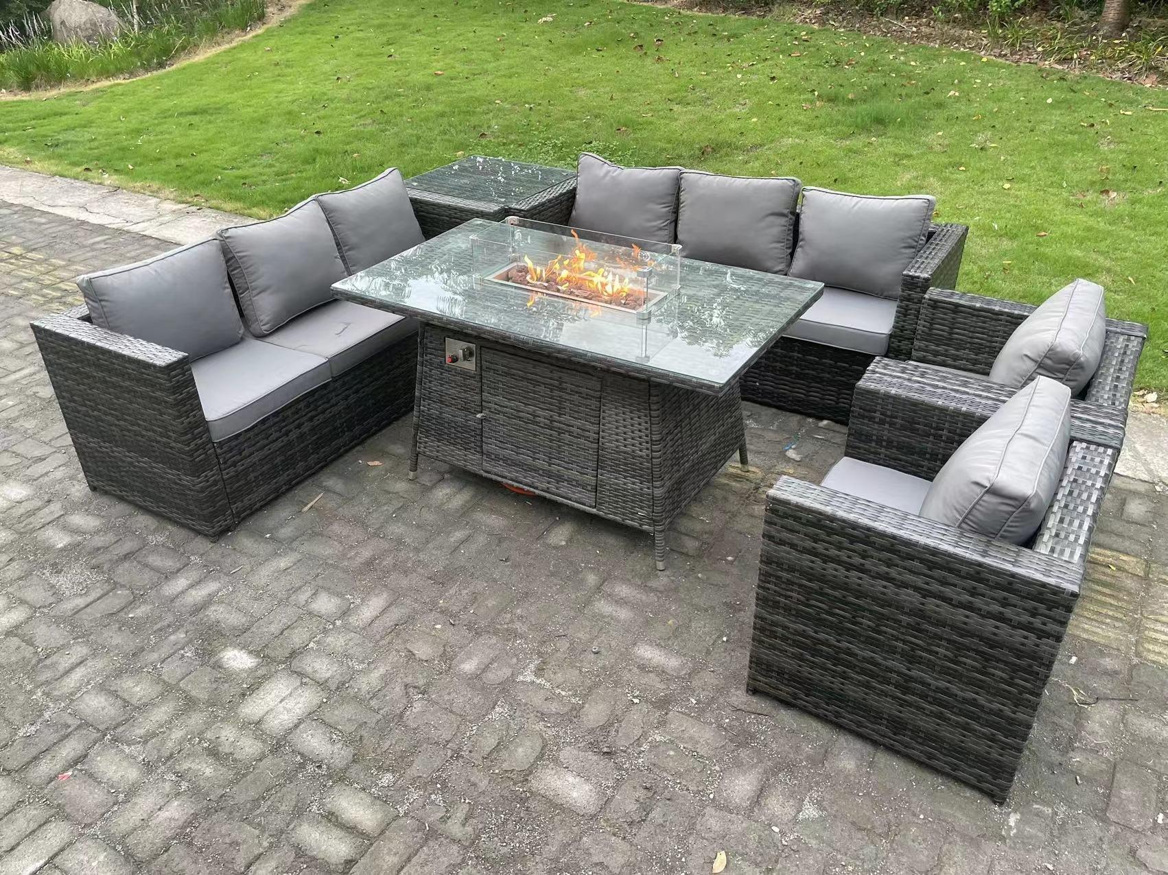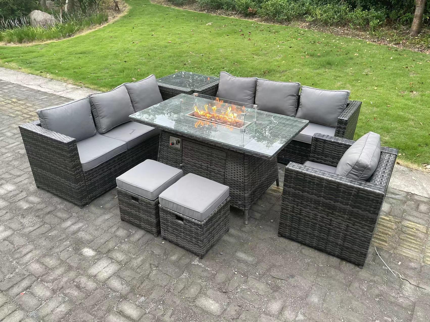 Rattan Garden Furniture Sofa Set Outdoor Patio Gas Fire Pit Dining Table Gas Heater Burner Side Table
