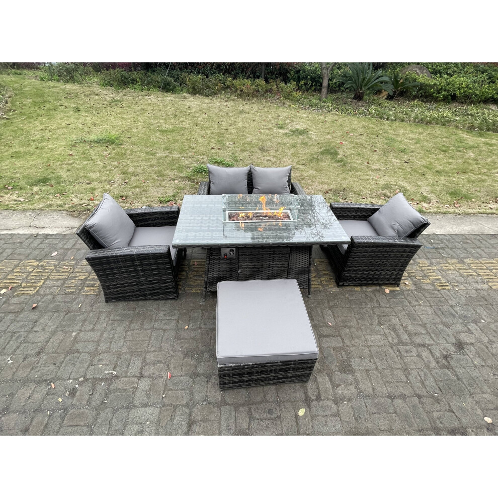 Fimous Rattan Outdoor Furniture Gas Fire Pit Rectangle Dining Table 6 Seater