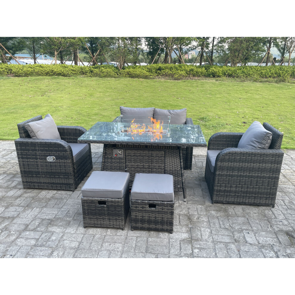 Fimous Rattan Outdoor Garden Furniture Gas Fire Pit Table Set 5 Seater