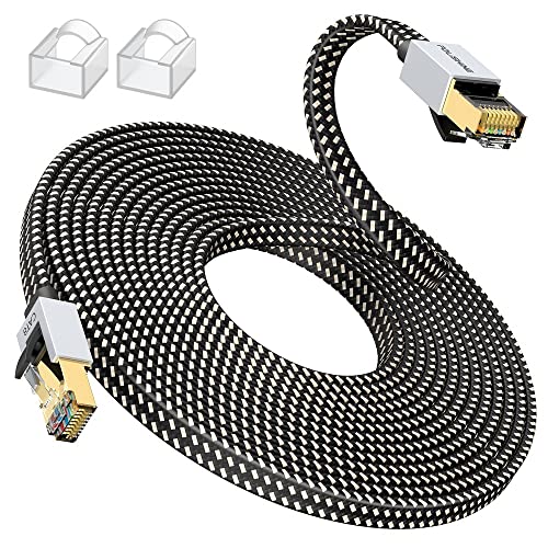 Cat 8 Ethernet Cable 10M, High Speed Gigabit Nylon Braided Lan Network Cat8 Patch Cord, 40Gbps 2000Mhz RJ45 Flat Cable Shielded, Indoor&Outdoor for Modem/Router/switch, Faster than Cat5e/Cat6/Cat7
