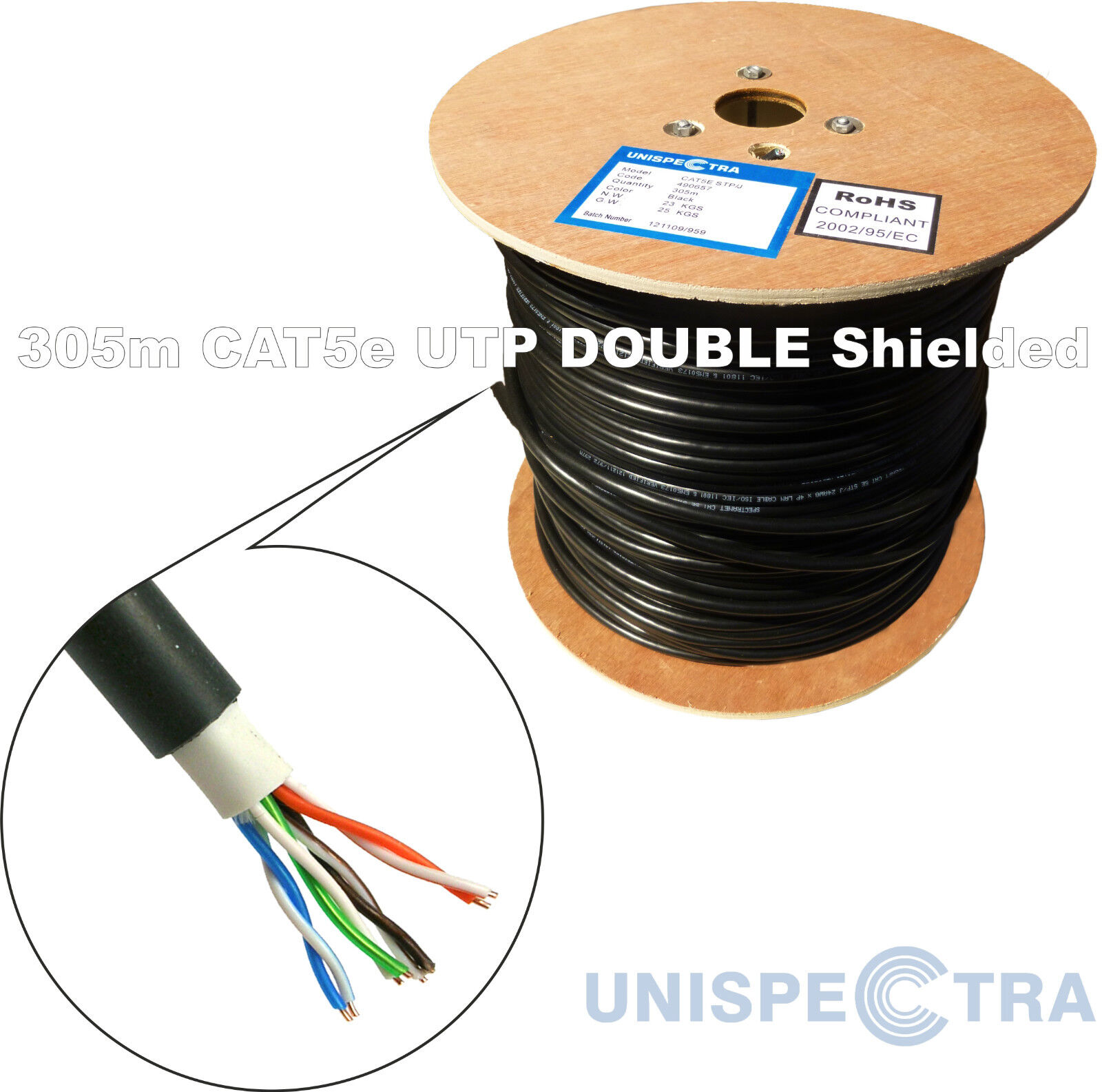 305m CAT5E UTP DOUBLE SHIELDED OUTDOOR Network LAN Cable BLACK - SOLID COPPER