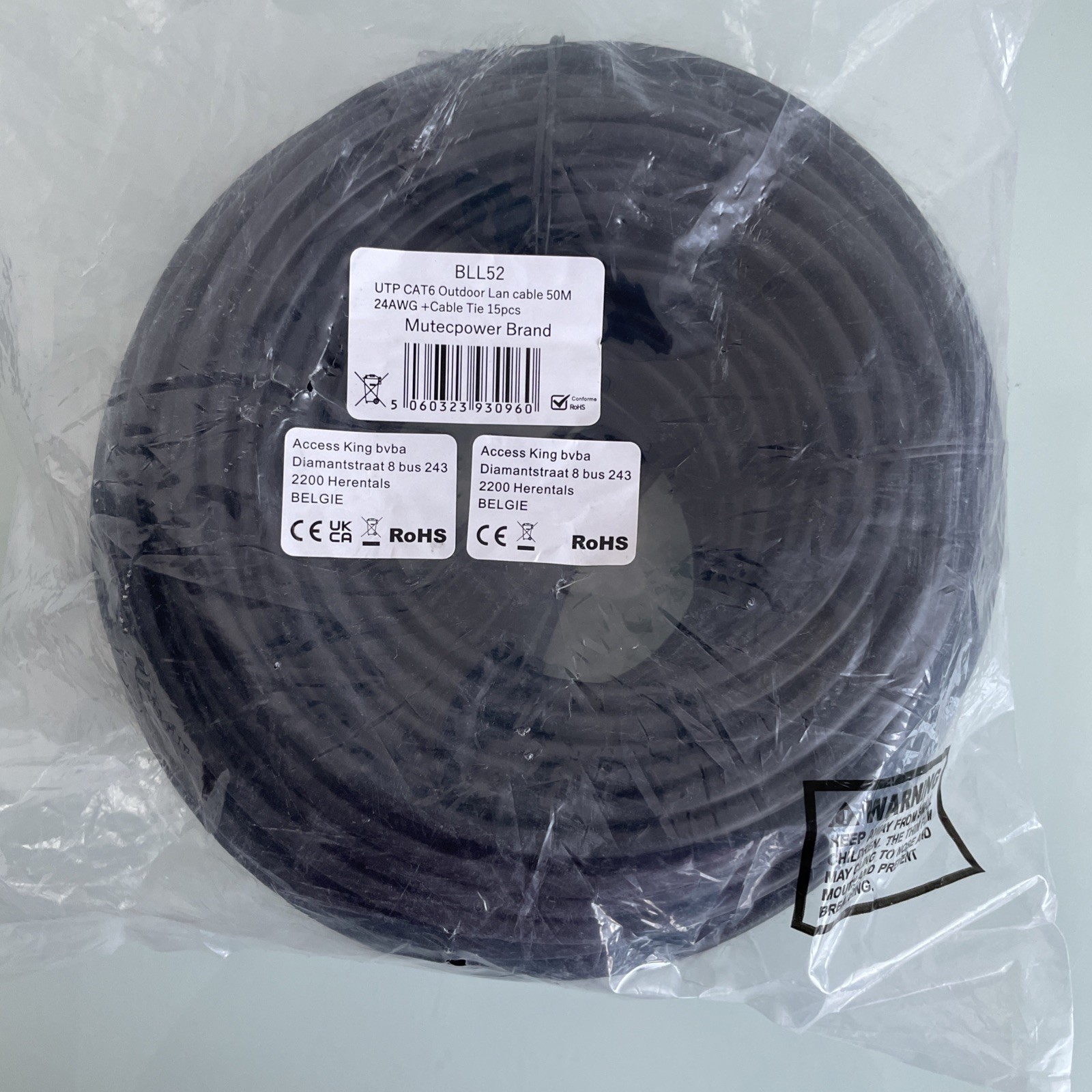 MutecPower Cat6 50m Outdoor Lan Ethernet Network Cable + Cable ties.