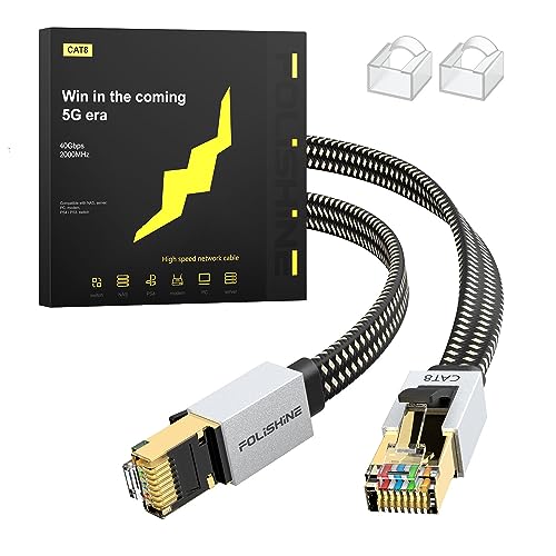 Cat 8 Ethernet Cable 5M, High Speed Gigabit Nylon Braided Lan Network Cat8 Patch Cord, 40Gbps 2000Mhz RJ45 Flat Cable Shielded, Indoor&Outdoor for Modem/Router/switch, Faster than Cat5e/Cat6/Cat7
