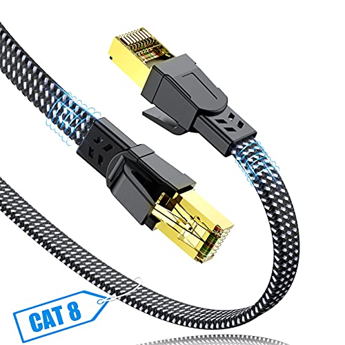Cat 8 Ethernet Cable 3M, High Speed Gigabit Nylon Braided Lan Network Cat8 Patch Cord, 40Gbps 2000Mhz RJ45 Flat Cable Shielded, Indoor&Outdoor for Modem/Router/switch, Faster than Cat5e/Cat6/Cat7