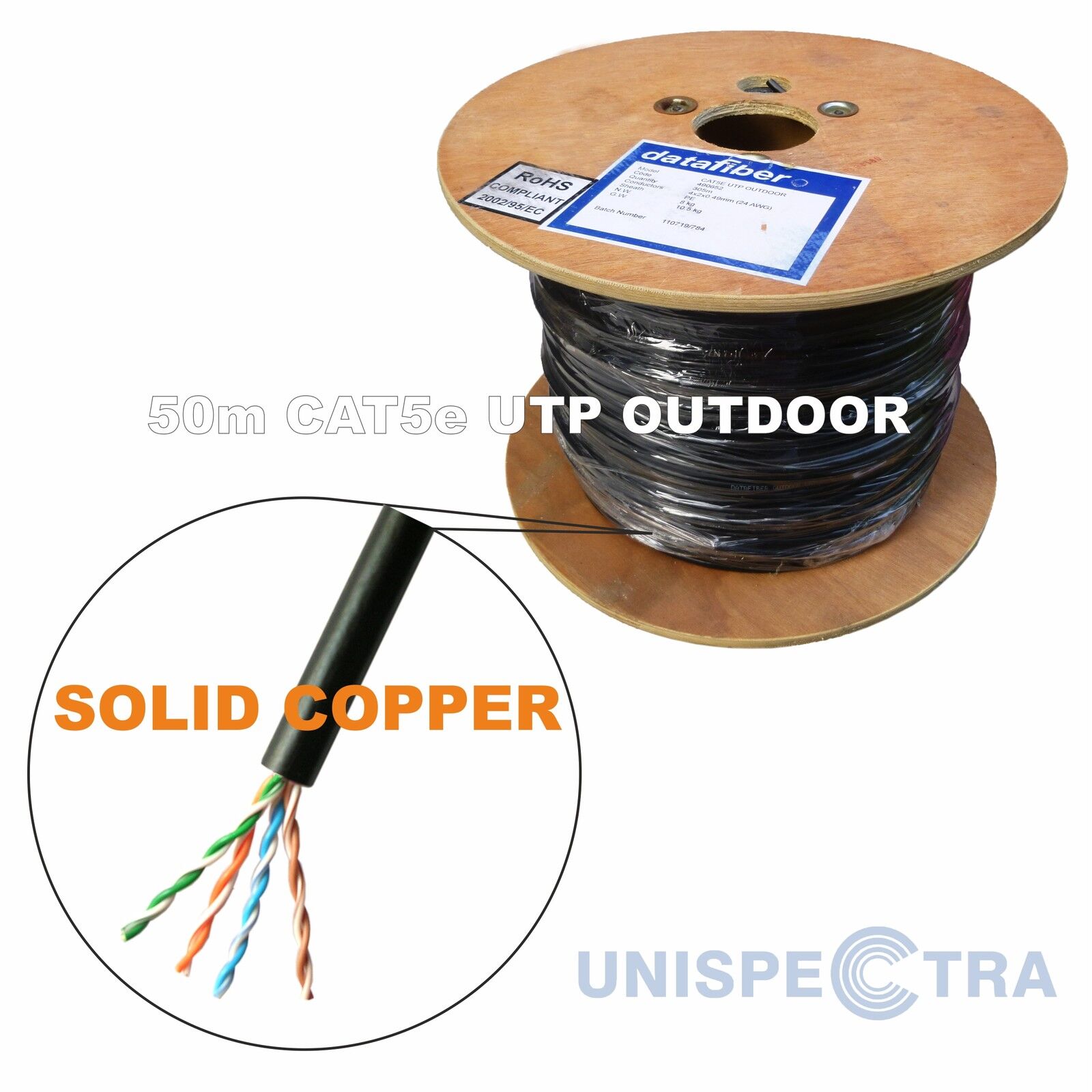50m CAT5e OUTDOOR Data LAN Network Cable, Underground PE BLACK - SOLID COPPER