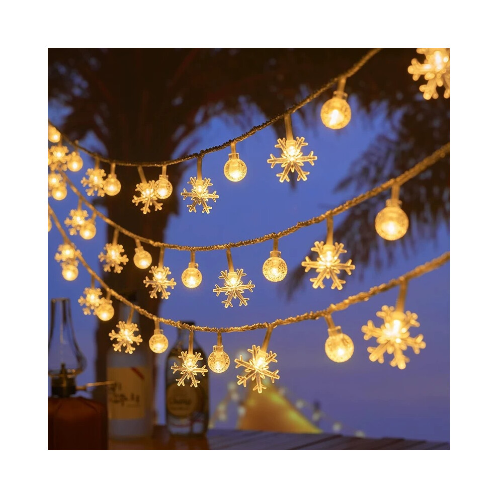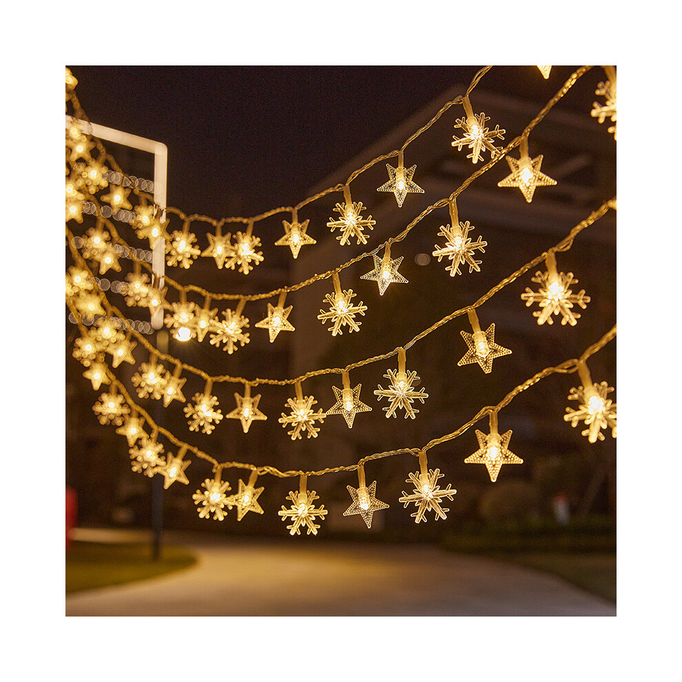 (Snowflakes and stars warm white, 10 meters 100 lights [with tail connector] plug-in type) Outdoor camping led ball light string room outdoor decorati