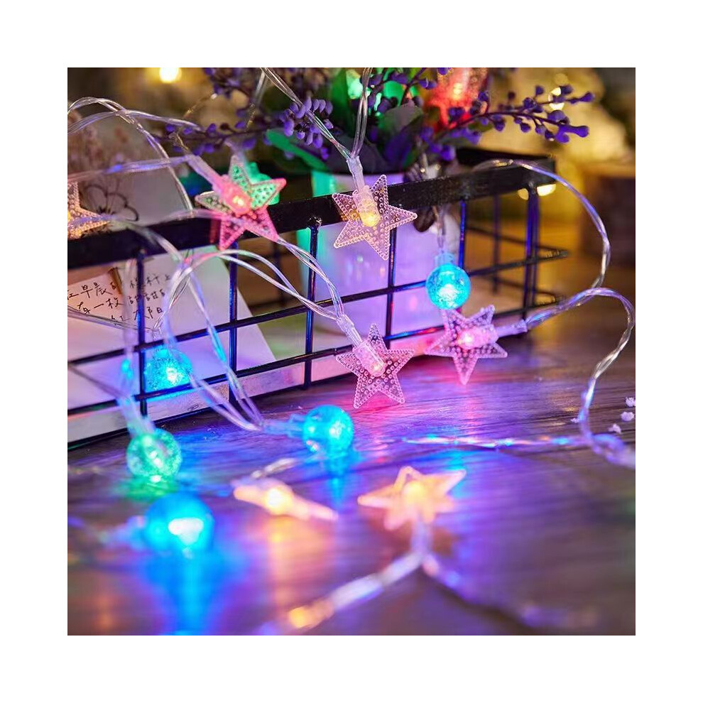 (Snowflakes and stars colorful, 10 meters 100 lights [with tail connector] plug-in type) Outdoor camping led ball light string room outdoor decoration
