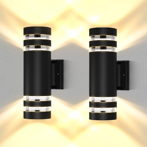 CHENBEN Outdoor Wall Lights Mains Powered IP44 Front Door Lights,Modern Round Outside Wall Lights,Waterproof Up Down Outside Light,External Wall Light for House Porch Garden,with GU10 Bulbs,2 Pieces