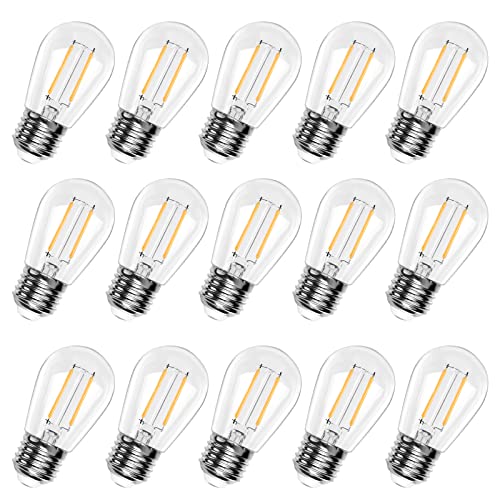 Spacelumen 15 Pack 2W E27 Screw Plastic S14 LED Light Bulb, Shatterproof & Waterproof 2700K Warm White Outdoor String Lights Bulbs
