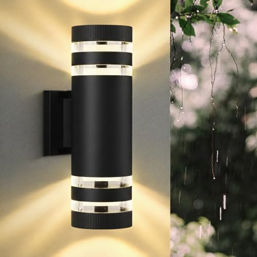 CHENBEN Outdoor Wall Lights Mains Powered IP44 Front Door Lights,Modern Round Outside Wall Lights,Waterproof up Down Outside Light,External Light for House Porch Garden,with GU10 Bulbs,Black