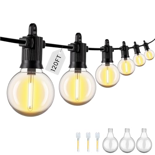 ZOTOYI 120FT/36.6M IP65 Outdoor Festoon Lights Mains Powered - Indoor Festoon Lights Outside Mains with 55+3pcs 30 Lumens G40 Globe Shatterproof LED Bulbs, Warm White Festoon for Garden House