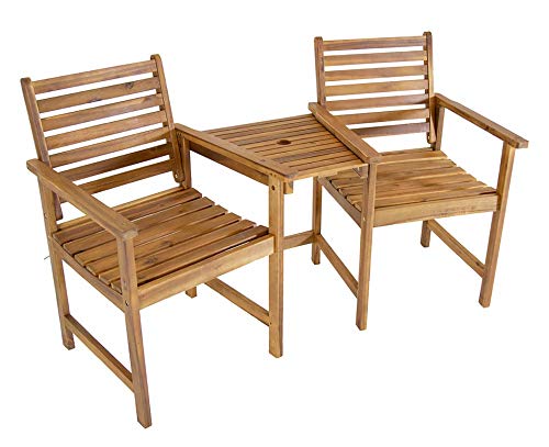 CHARLES BENTLEY FSC Certified Wooden, Companion Seat, Shelf For Books And Drinks, Garden Seats, Outdoor Furniture, Parasol Hole, Lightweight, Seating For Two People, Oil Coated Colour (168x85x71cm)