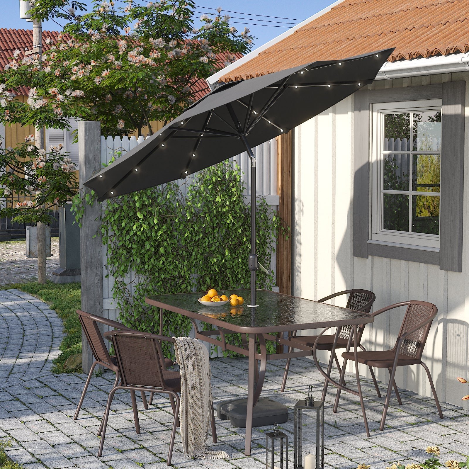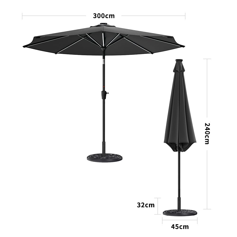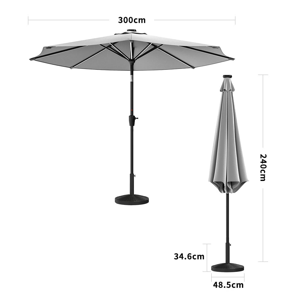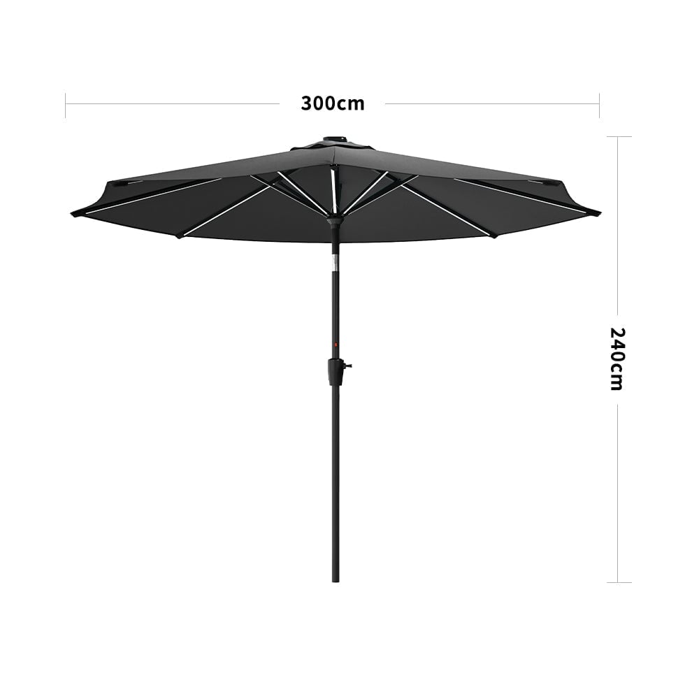 Dark Grey 3M Outdoor Parasol Umbrella with LED Lights