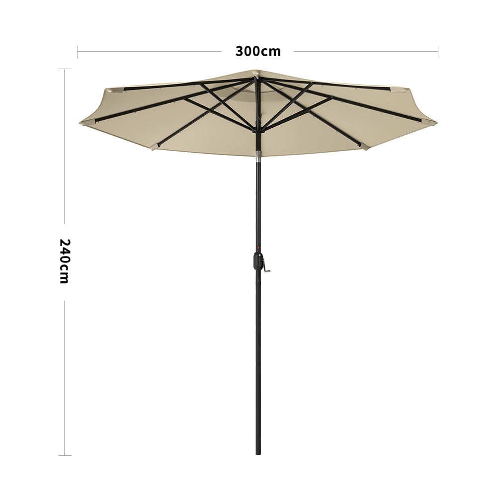 Beige 3M Outdoor Parasol Umbrella with LED Lights