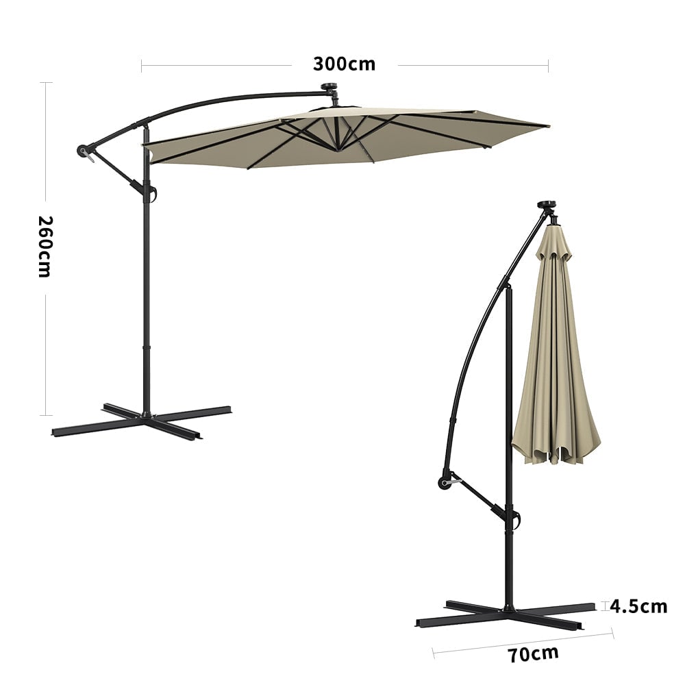 Beige Outdoor Cantilever Parasol Umbrella with LED Lights