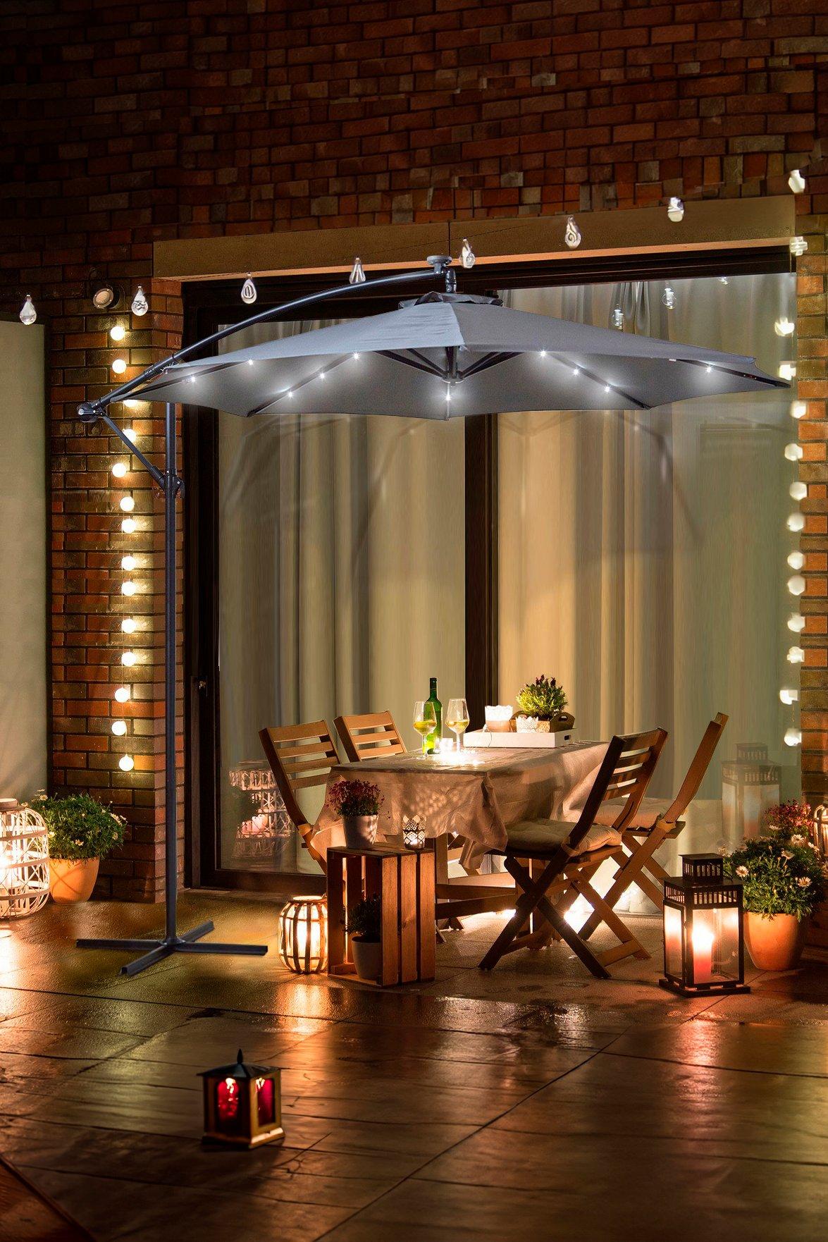 Grey Outdoor Cantilever Parasol Umbrella with LED Lights