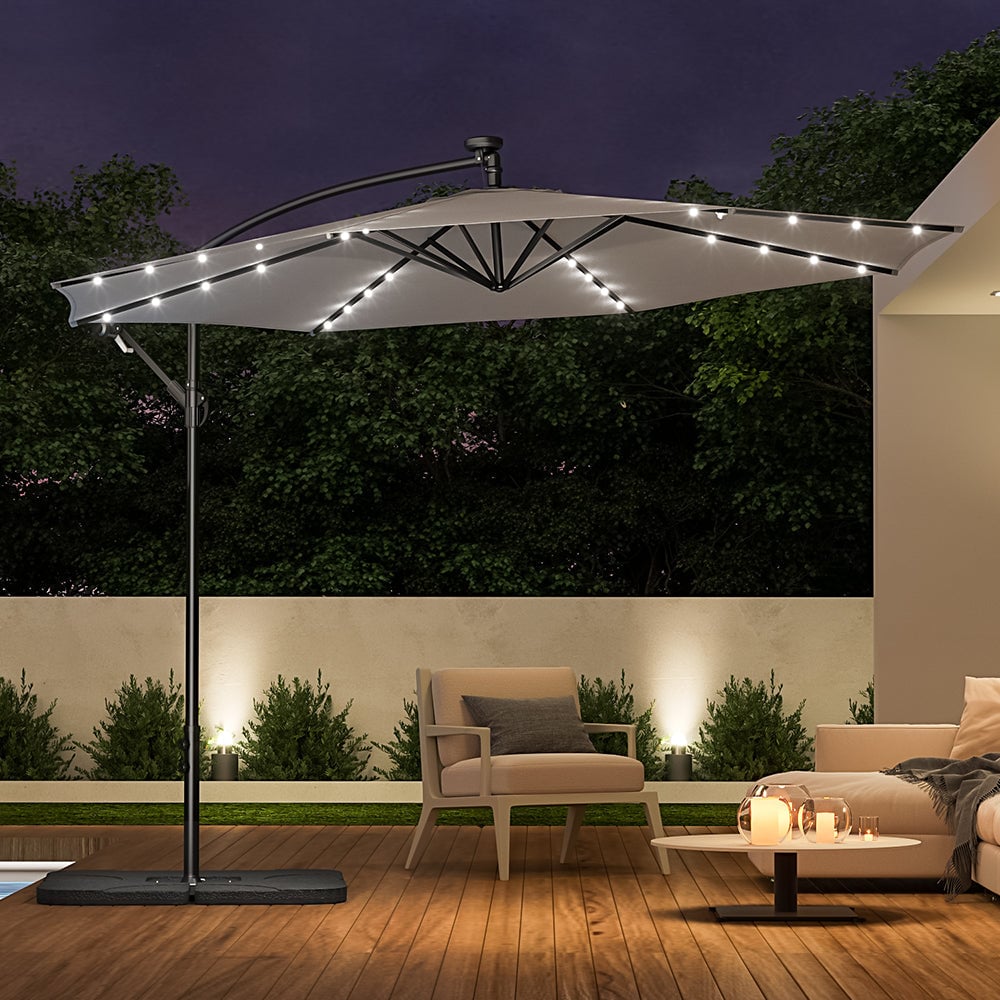 3Metre LED Cantilever Parasol Outdoor with Base Solar Lights