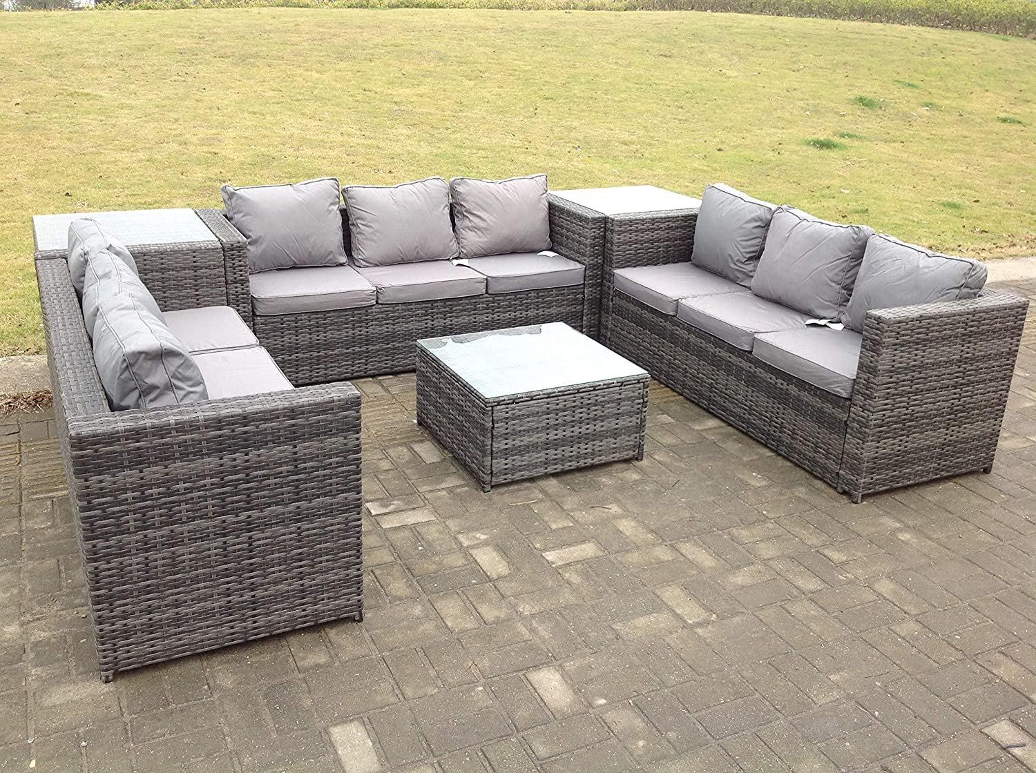 8 Seater Grey Rattan Corner Sofa Set Coffee Oblong Coffee Table Outdoor Garden Furniture Patio